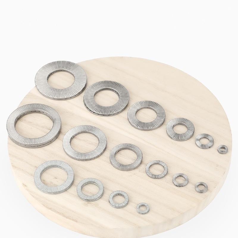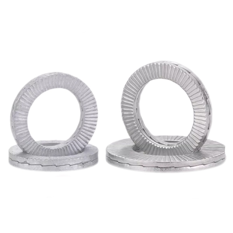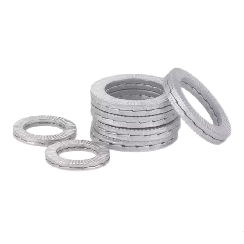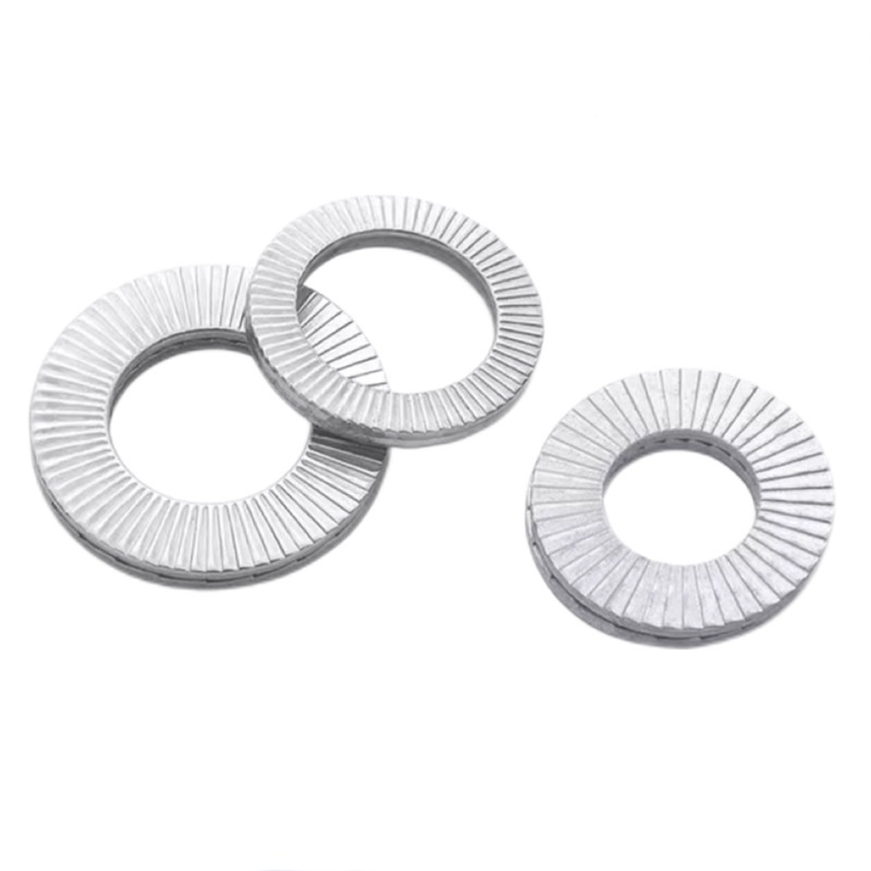 واشرهای قفل شده دوتایی دو برابر برای چسباندن در محیط های پر لرزه ای ایده آل هستند. برنامه های کاربردی آنها شامل بخش های مهمی از جمله تولید خودرو ، ماشین آلات سنگین ، تجهیزات کشاورزی ، هوافضا و سیستم های راه آهن است که در آن چسباندن امن برای ایمنی کلی بسیار مهم است.