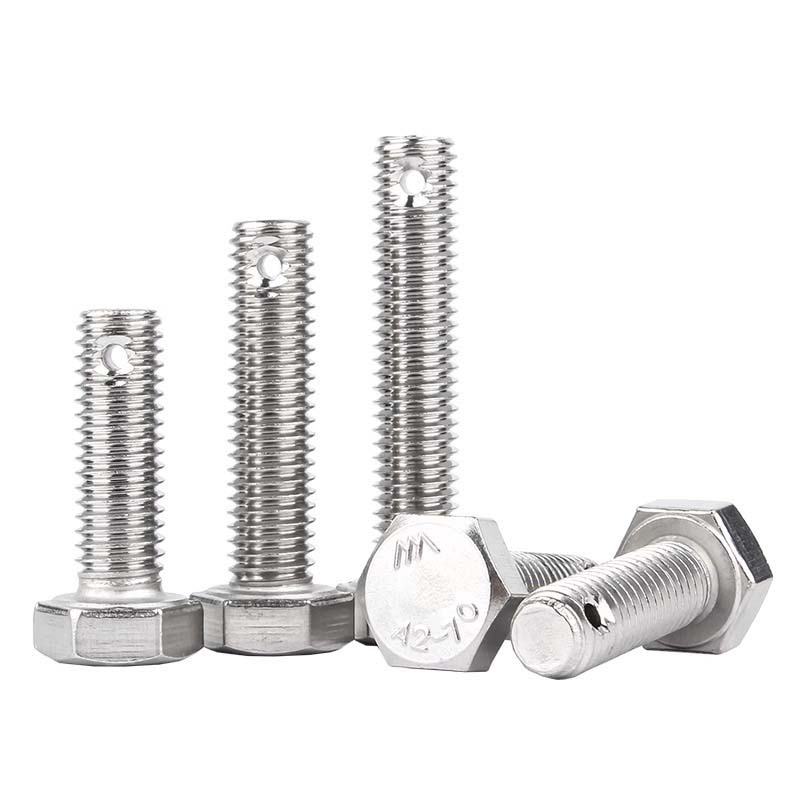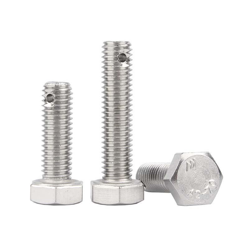 سرپیچ های شش ضلعی با سوراخ پین تقسیمشش ضلعی است و می تواند با آچار سفت شود. یک سوراخ کوچک بر روی ساقه بدون نخ حفر می شود. این سوراخ کوچک را می توان با یک پین بالشتک برای قفل کردن پیچ درج کرد.