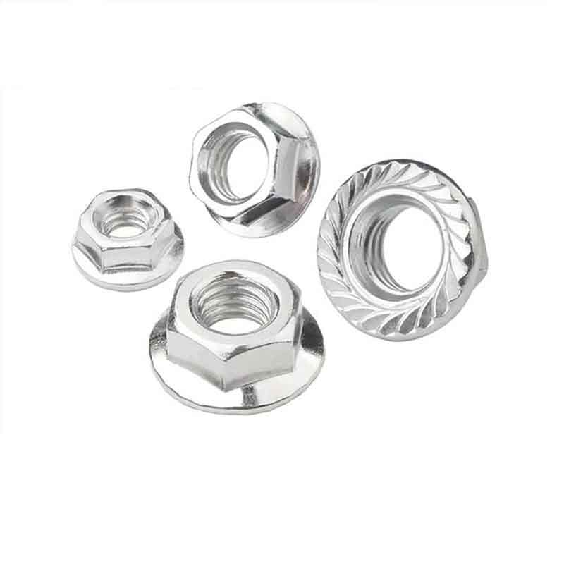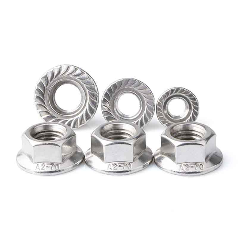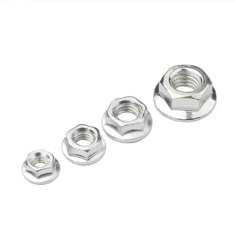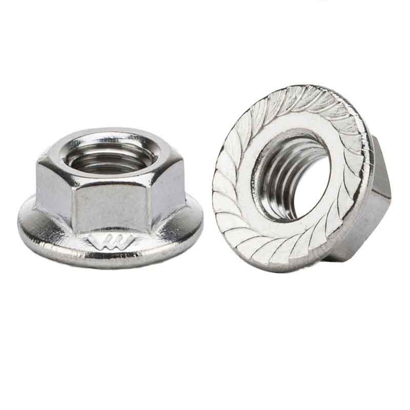 دندانه های کوچکی در پایین فلنج وجود دارد. اینها به آنها کمک می کند تا به خوبی در برابر لرزش مقاومت کنند، بنابراین در هنگام بارهای متحرک شل نمی شوند. این یک مزیت بزرگ در مقایسه با استفاده از یک مهره معمولی با یک واشر جداگانه است.