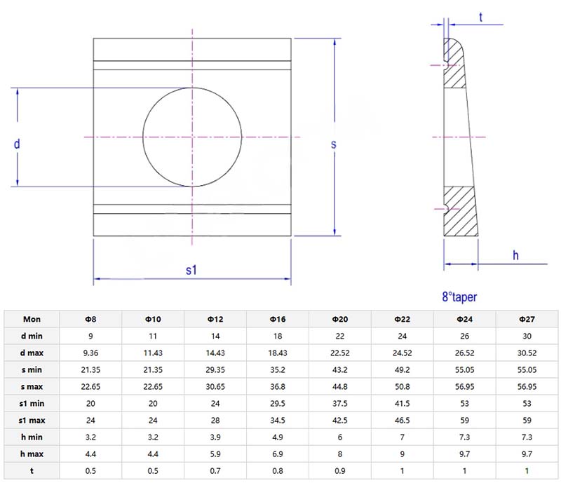 واشر مربع مربع یک قسمت مکانیکی با یک سوراخ گرد در وسط یک شکل مربع است که با آجیل ، پیچ و مهره یا اتصالات دیگر استفاده می شود. سطح واشر را می توان برای تشکیل یک فیلم محافظ برای افزایش مقاومت در برابر خوردگی و مقاومت در برابر سایش پوشانده کرد. مواد پوشش را می توان انتخاب کرد. برای کسب اطلاعات در مورد مواد پوشش خاص و سفارشی کردن آن با توجه به وضعیت واقعی ، با کارخانه Xiaoguo® تماس بگیرید.