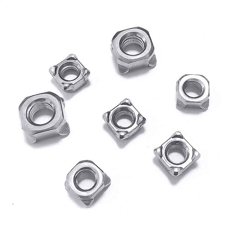مهره های جوش مربعی نوع B به طور کلی به شکل مربع هستند. آنها دارای سوراخ های رزوه ای در وسط هستند و هر یک از چهار گوشه دارای یک برآمدگی کوچک است که به طور خاص برای جوشکاری طراحی شده است. از M4 تا M12، همه در دسترس هستند و پیچ های مربوطه نیز ارائه می شود.