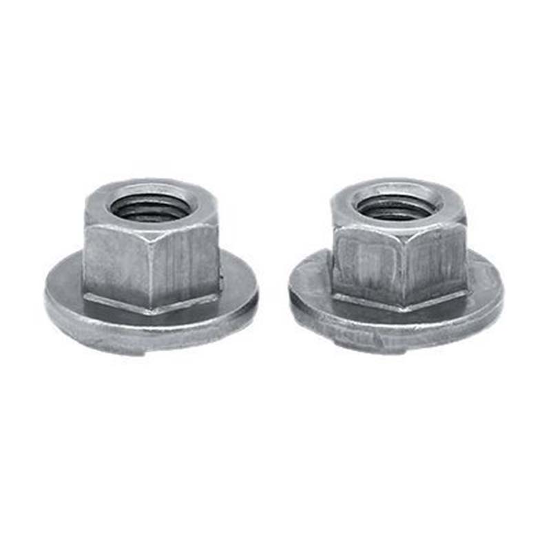مهره شش ضلعی جوش با فلنج، مهره های جوشکاری شش ضلعی استاندارد با یک نشیمن پایه دایره ای تخت اضافی است. Lan می تواند سطح جوش بزرگتری را فراهم کند. سطح جوش بزرگتر معمولاً به معنای اتصال قوی تر و پایدارتر با صفحه فلزی است. هنگام سفت کردن پیچها، به توزیع بهتر بار در زیر مهره کمک میکند و در نتیجه احتمال ایجاد فرورفتگی روی صفحات نازکتر را کاهش میدهد.